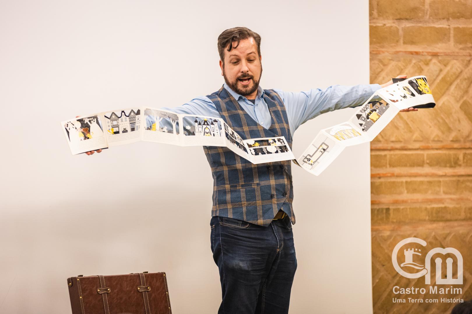 “Isto também é um livro?” contou com a participação do contador de histórias, ator, animador sociocultural e facilitador Bruno Batista, que através de uma forma divertida de refletir e alargar o conceito que existe sobre a leitura, desconstruiu a ideia formal de um livro.