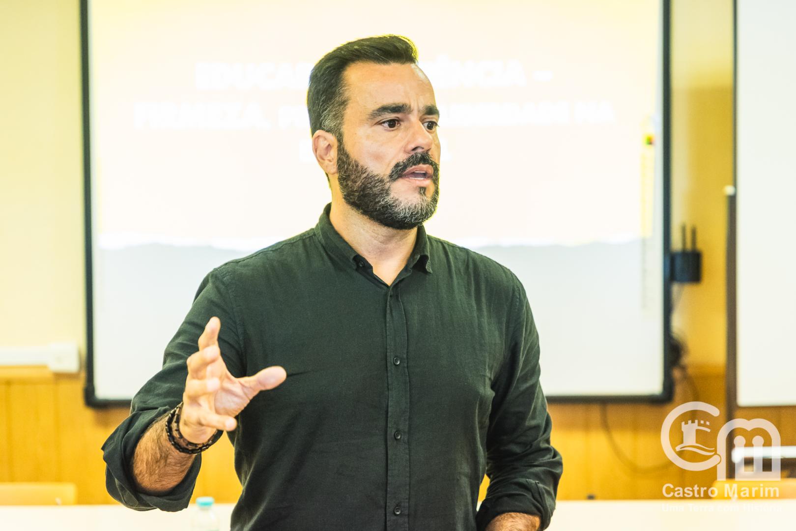 O auditório da Escola Básica de Castro Marim acolheu na sexta-feira, dia 26 de setembro, uma palestra com o especialista em psicologia educacional e desenvolvimento de competências socioemocionais Alfredo Leite.